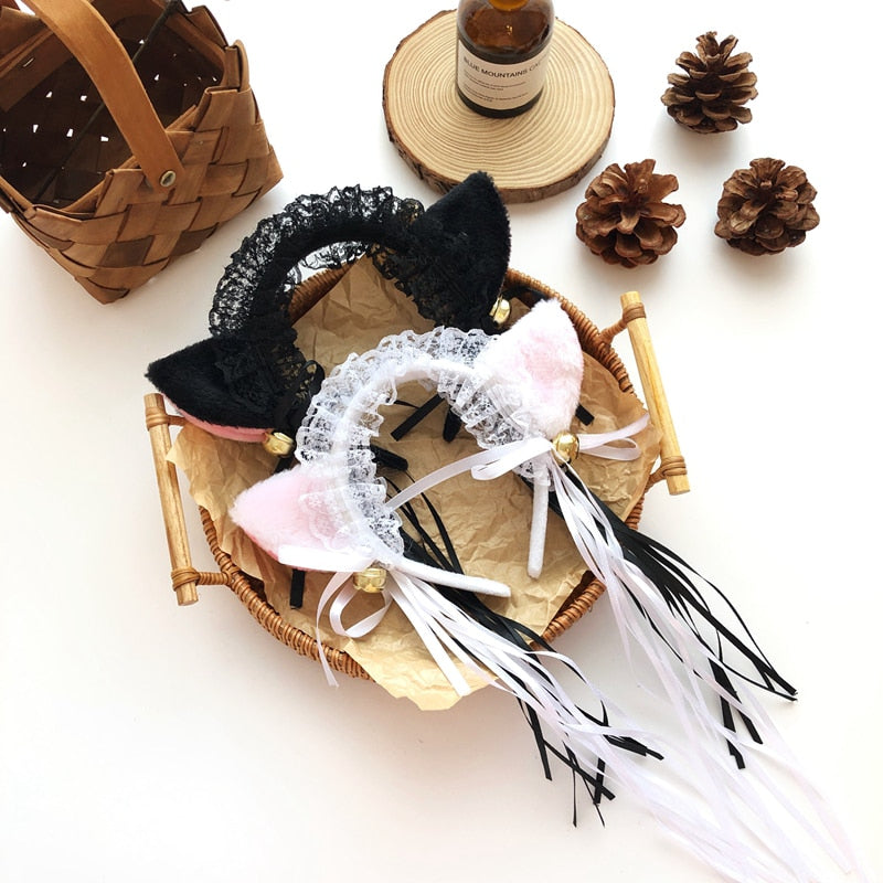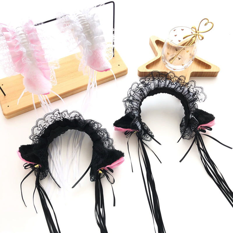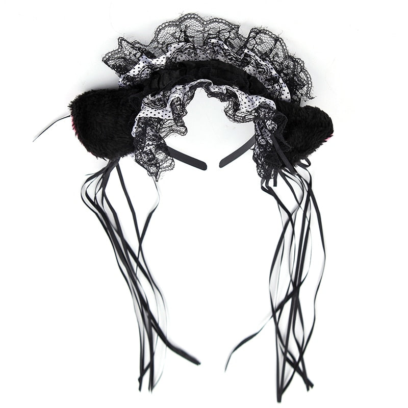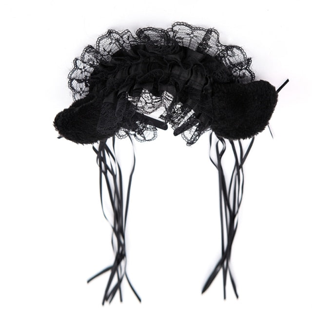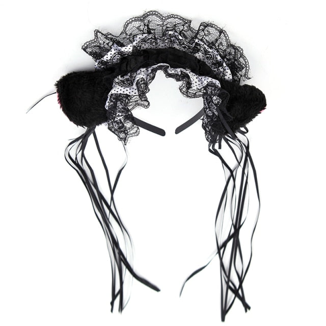 Gothic Lolita Lace Headband Plush Cat Ears Hair Hoop
