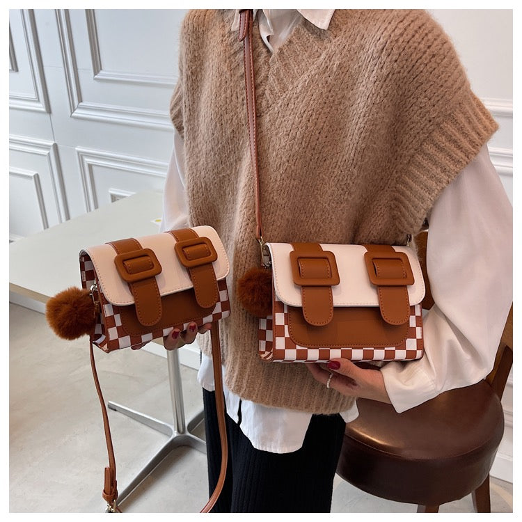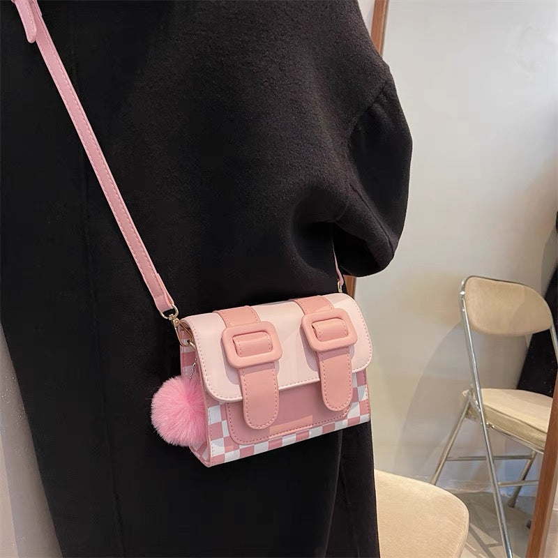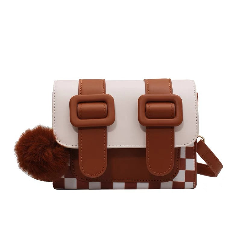 Kawaii Wool Ball Chessboard Square Bag